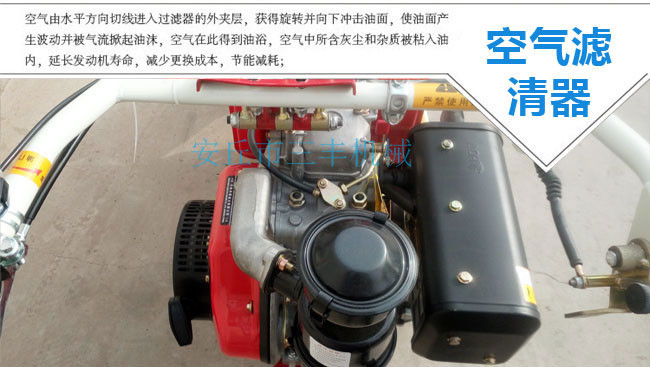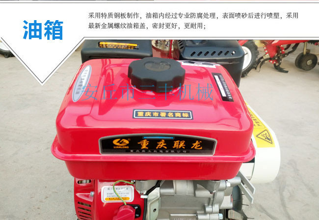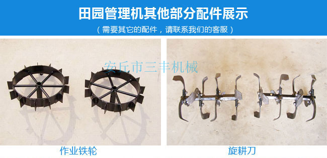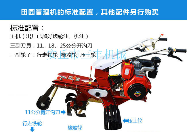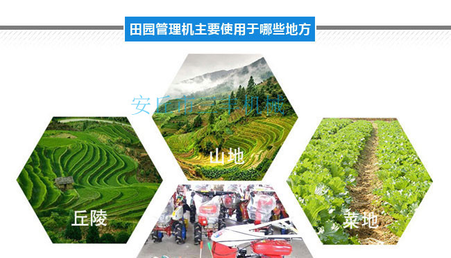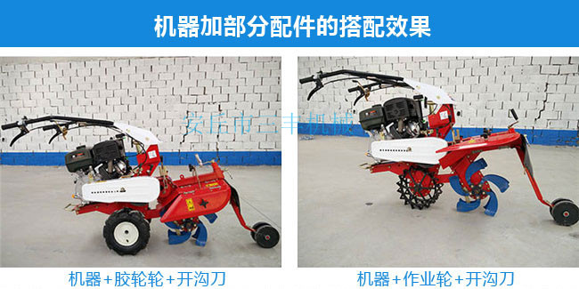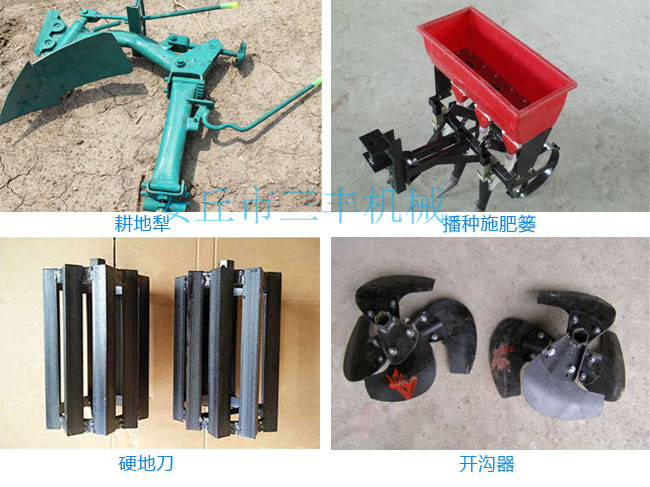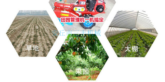 田園管理機(jī)安裝上不同的配件可以開溝、起壟、培土、打藥、播種、旋耕、松土、中耕、深耕、除草、施肥、噴藥殺蟲、噴淋、收割、鋪地膜、抽水澆地、開荒、發(fā)電、噴淋、打孔、碎草、根莖收獲、復(fù)土、開深溝、施底肥、偏培土、埋葡萄藤、扶壟、田間運(yùn)輸?shù)龋c其他單一功能的田園管理機(jī)是不同的。