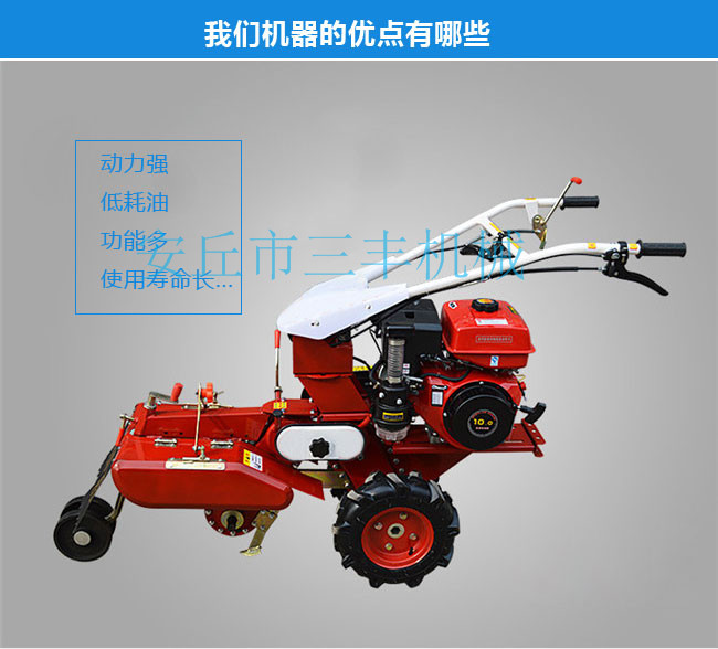 開溝培土機(jī)為我公司主打產(chǎn)品。田園管理機(jī)以傳動方式為齒輪式變速箱,產(chǎn)品結(jié)實(shí)耐用,性能優(yōu)越,操作方便。